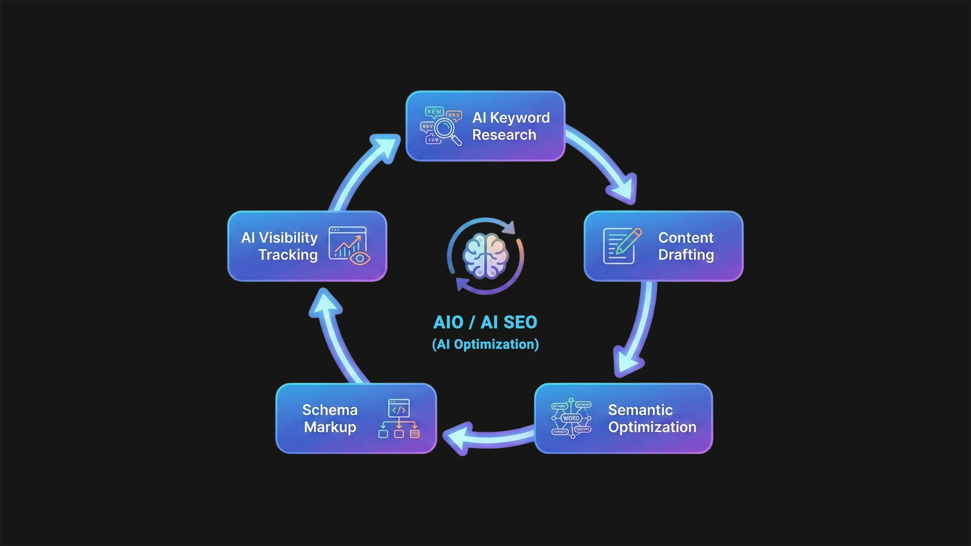 - AI Optimization (AIO) as an SEO workflow concept: This means integrating artificial intelligence into your SEO operations. Think of using machine learning to automate or enhance parts of your workflow – from keyword research and content generation to analysis and reporting. The term AIO highlights the growing role of AI in marketing and reminds us to move toward machine-assisted efficiency (while still applying human creativity and oversight). AIO, in this sense, is about using AI for SEO. For example, you might use AI tools to cluster keywords, generate content briefs, or identify patterns in analytics that would be hard for a human to catch manually.